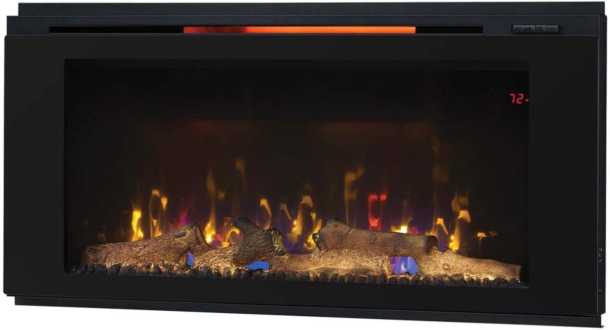 Easily improve the character of any room with this sleek, Helen wall hanging electric fireplace that provides supplemental zone heating for up to 400 square feet. Installation options include building this fireplace into your wall or simply mounting to the wall. This electric fireplace features Spectrafire® flame effect technology, displaying three blue and three amber flame effect brightness settings that can be set to get the look of a modern gas fire or a cozy wood burning fire.Read More