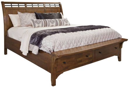 The Whistler Retreat storage bed showcases a warm chestnut finish with rich wood grain details. Featuring built-in storage drawers, it combines rustic elegance with practical functionality, creating a cozy and organized centerpiece for any bedroom.Read More